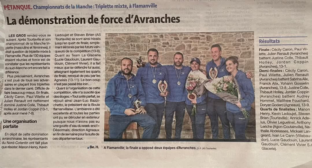 Article de la Manche libre du club de pétanque Avranchinaise.