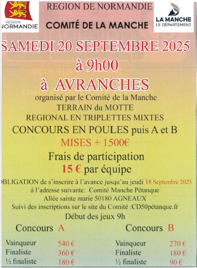 Le 18 Mars 2025 concours tri au boulodrome le (Haras ) à Avranches début à 14h