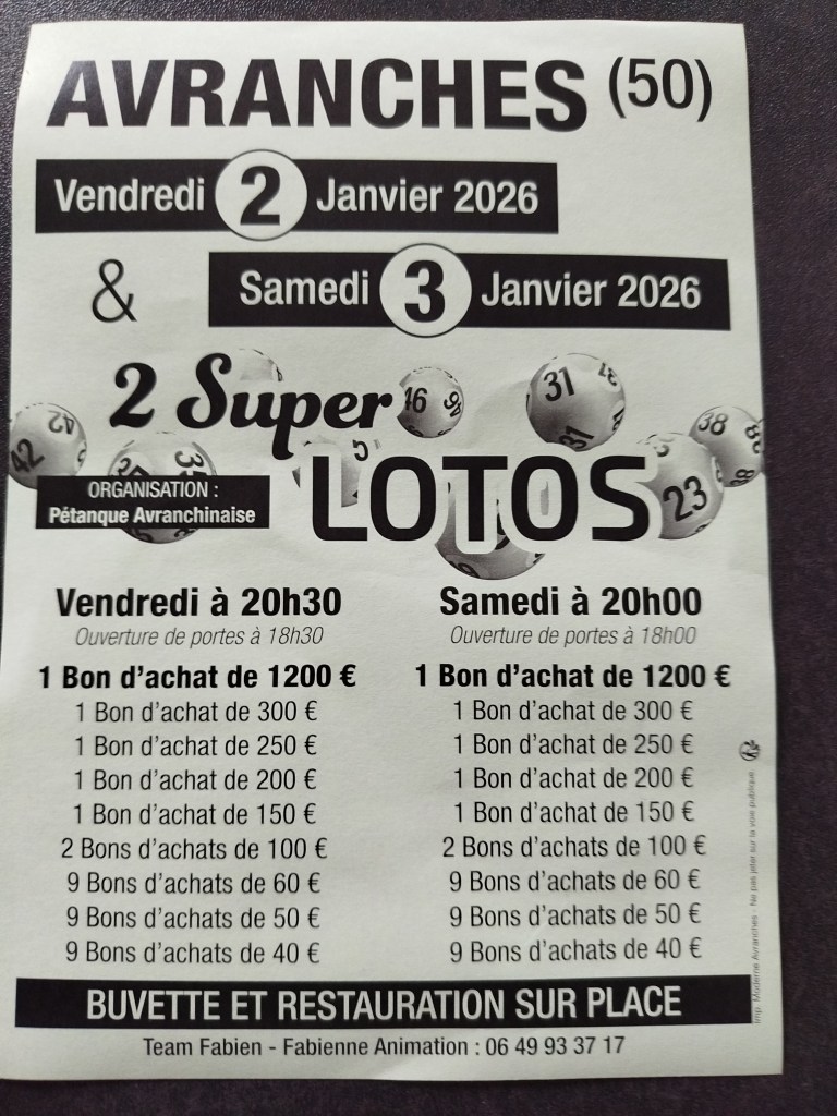 Bienvenue dans le monde du loto à la salle polyvalente d’Avranches plus de 500 personnes avec des bons d’achat.